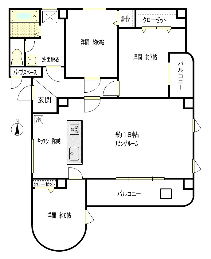 洋室 6畳 2室 洋室 7畳 LDK 18畳 |