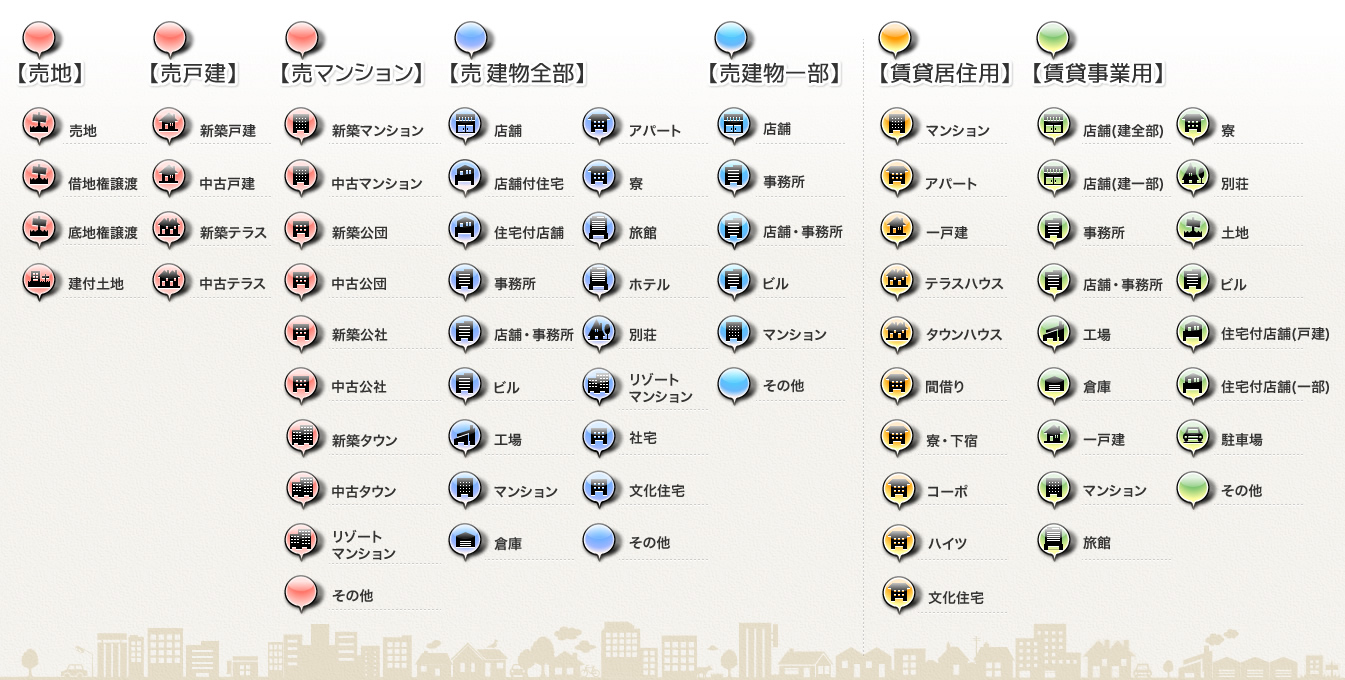 条件を絞り込んでマーカーを再表示させる事もできます。 ご希望の条件を設定後下の物件検索ボタンを押してください。